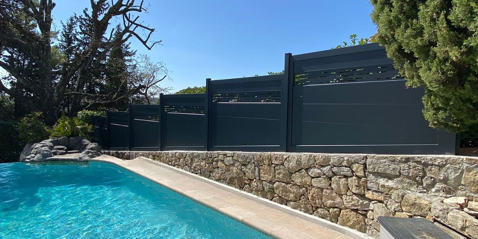 Découvrez nos réalisations de clôtures de la collection Confort, avec nos modèles occultants ou ajourés aux lignes sobres et épurées. Pour protéger des regards indiscrets les zones demandant davantage d'intimité telles que terrasse, salon de jardin, ou piscine, vous pouvez opter pour de grandes hauteur de clôture qui joue alors le rôle d'un brise-vue.